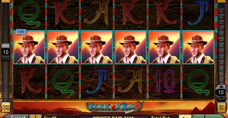 The Book of Ra 6 slot uses 10 adjustable paylines. To manage their quantity, use the Lines menu. If, after selecting 10 lines, a gambler presses the “+” button again, an extra bet is activated. It introduces an additional sixth reel to the game. Its use allows you to collect the winning combinations more often and expect larger amounts of prize payouts.