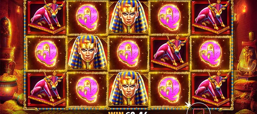 The slot’s columns are filled with images of a pharaoh, bull, falcon, cat and dog, as well as playing cards from ten to ace. The icons are not stacked.