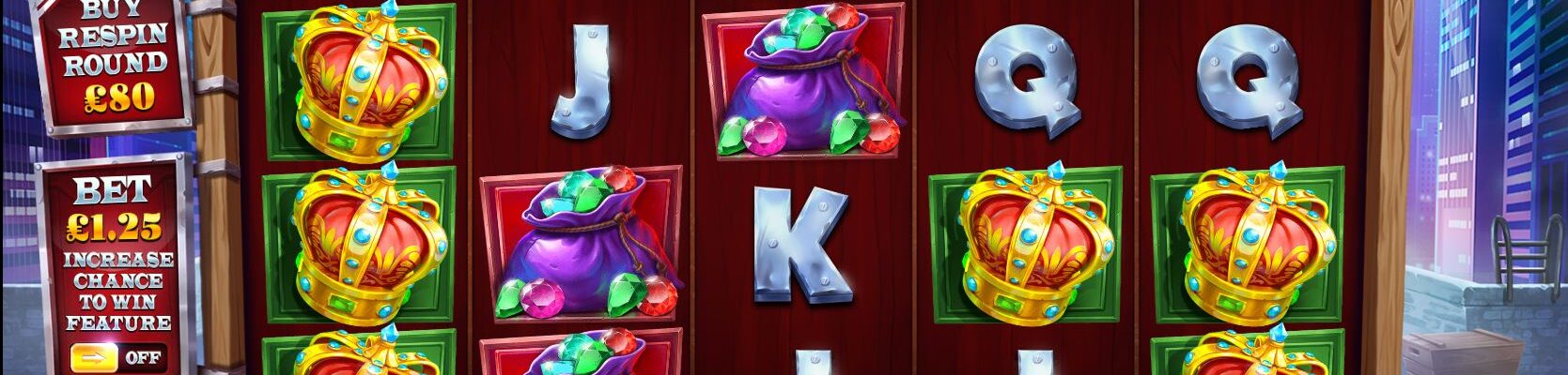 • Scatter appear on reels 1, 3 and 5 and, as usual, are not associated with any active line. 3 or more Scatter’s activate the ‘Bank Robbery’ bonus. In this feature, the base grid changes and can grow in size up to 6×7. Throughout the bonus, only the special symbols will appear on the screen. You start with 3 spins, and the counter resets back to 3 each time a new icon appears. At the end of the feature you receive your winnings, which are displayed below the reels.