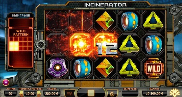 Incinerator, unlike most other slots, does not have the typical bonus features. However, an exciting gameplay is waiting for you with Wild symbol and Wild feature. The Wild – the icon with the corresponding inscription – replaces all other symbols in the game. Wild always works in such a way that you get the maximum winnings possible in the situation. Catching 3 wins in a row, you activate the bonus feature. The Wilds will appear on the playing field according to the picture on the left side of the screen. There are a total of 16 variants of such drawings in the game. First you get a drawing from the first 10, and the next time you activate the function you get a drawing from the other 6. Finally, there is an autoplay feature, allowing you to set the desired number of spins and relax just by watching the spinning of the reels. Manual control can be returned to at any time by pressing the ‘Stop’ button.