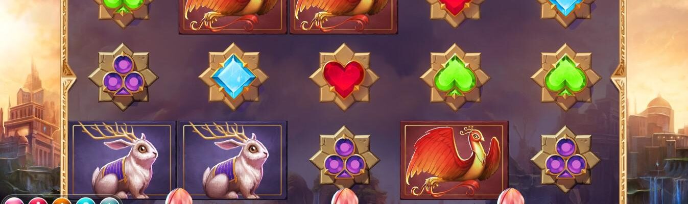 The high value symbols are a bird, a dragon, a rabbit, and a dog-eagle hybrid. All of them differ in value. Payouts can range from 20 to 250 coins, depending on the number of identical icons in a line. The second group of symbols in Nirvana are the classic card suits: spades, clubs, diamonds and hearts. Combinations that you’ll make with them will bring you winnings ranging from 5 to 75 coins. Before you go directly to the rotation of the drums, you will need to make a bet. To do this, use the -/+ buttons at the bottom of the screen. The coin value can be set from 0.01 to 5.